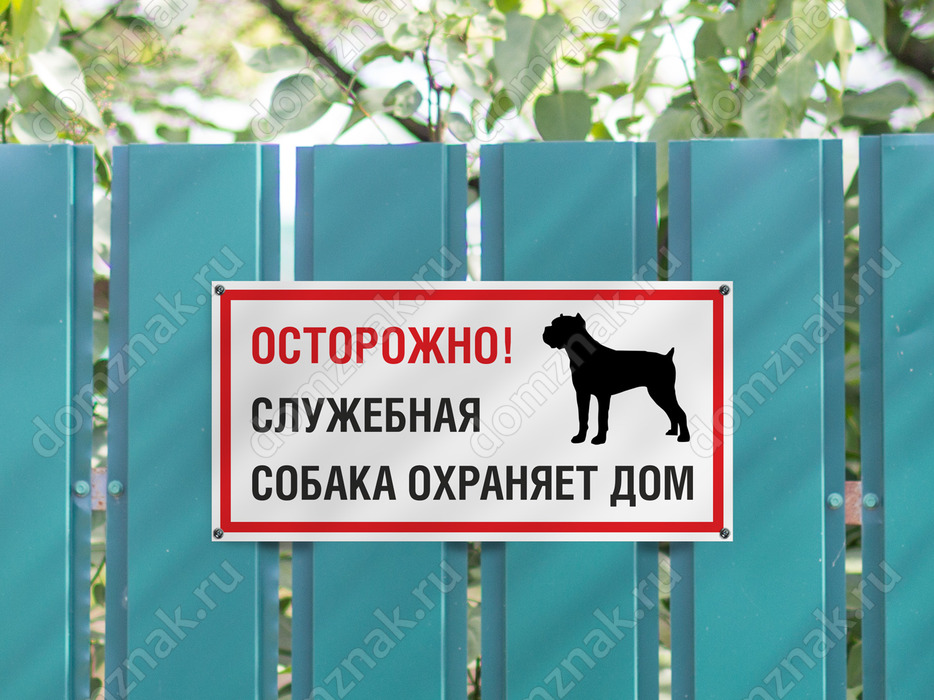 Табличка «Служебная собака охраняет дом» изготавливается на основе из пластика ПВХ или оцинкованного металла.