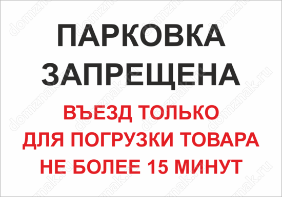 Установите в погрузочной зоне вашего магазина табличку «Въезд только для погрузки товара». Она предупредит водителей, что на этой территории парковаться запрещено. Табличка донесет до окружающих информацию в доступной форме благодаря лаконичному посланию и минималистичному дизайну. За счет удачного сочетания красного, черного и белого цветов она будет хорошо видна с большого расстояния.