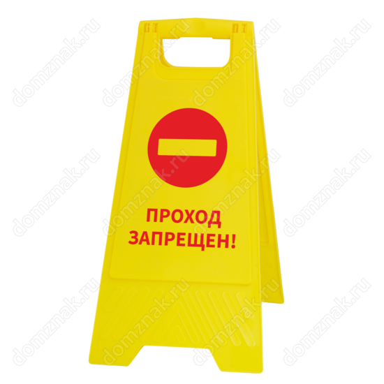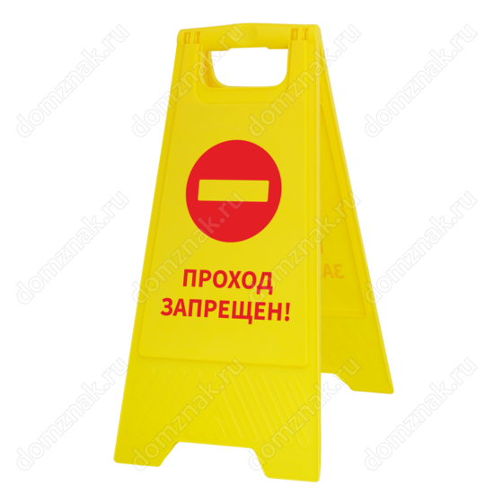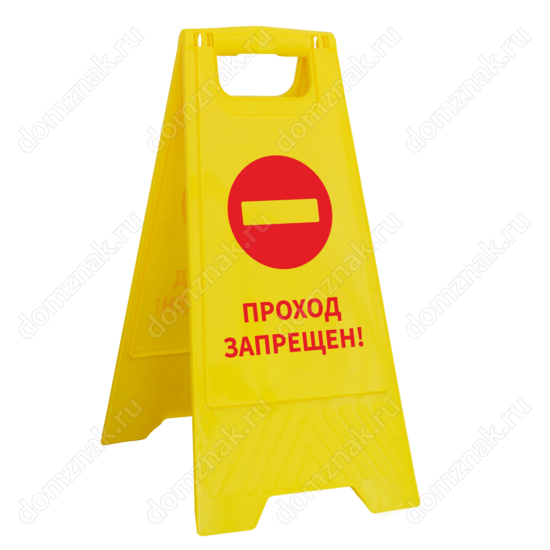 Купите табличку на пол «Проход запрещён», если хотите закрыть доступ посетителям к некоторым зонам вашего заведения. Расположите ее у входа, раскрыв по типу книжки. Емкая надпись и понятный знак насыщенного яркого цвета отлично контрастируют с яркой поверхностью таблички. За счет своей компактности и легкости ее удобно хранить. А устойчивость и надежность делает ее лучшим предупреждающим знаком для предприятий любого типа.
