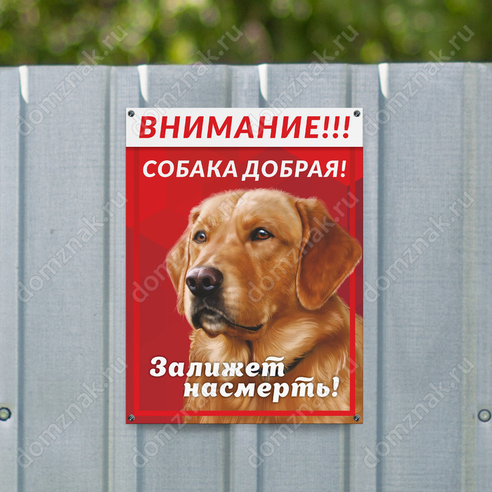 Табличка на забор собака добрая, залижет насмерть»