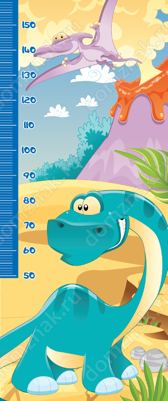 Узнавать свой рост ребенку поможет этот замечательный стенд ростомер на стену. Он порадует своим ярким и веселым дизайном, изображением доисторического мира, в том числе динозавра и птеродактиля. Линейка с отметками размещена сбоку, а не по центру, как во многих моделях ростомеров. Украсив детскую комнату таким изделием, вы привнесете в нее много веселья и ярких красок.
