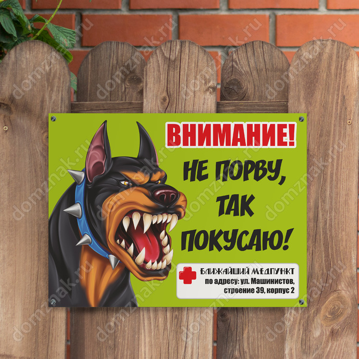 Табличка «Не порву, так покусаю» изготавливается на основе из пластика ПВХ или оцинкованного металла.