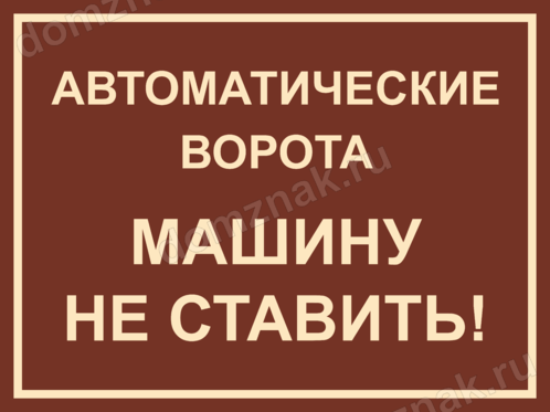 Табличка «Автоматические ворота, машину не ставить» изготавливается на основе из пластика ПВХ или оцинкованного металла.