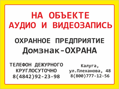 Табличка «Охранное предприятие» изготавливается на основе из пластика ПВХ или оцинкованного металла.