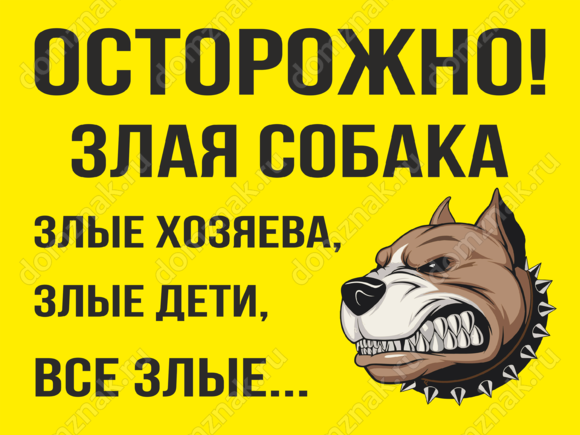 Табличка «Злая собака, хозяева, дети»