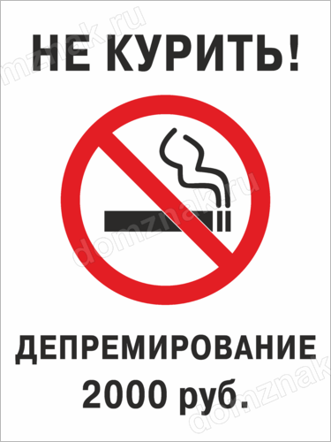 Табличка «Не курить, депремирование» изготавливается на основе из пластика ПВХ или оцинкованного металла.