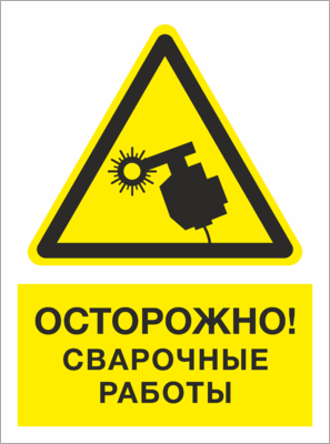 Табличка «Осторожно! Сварочные работы» изготавливается в нескольких вариантах: