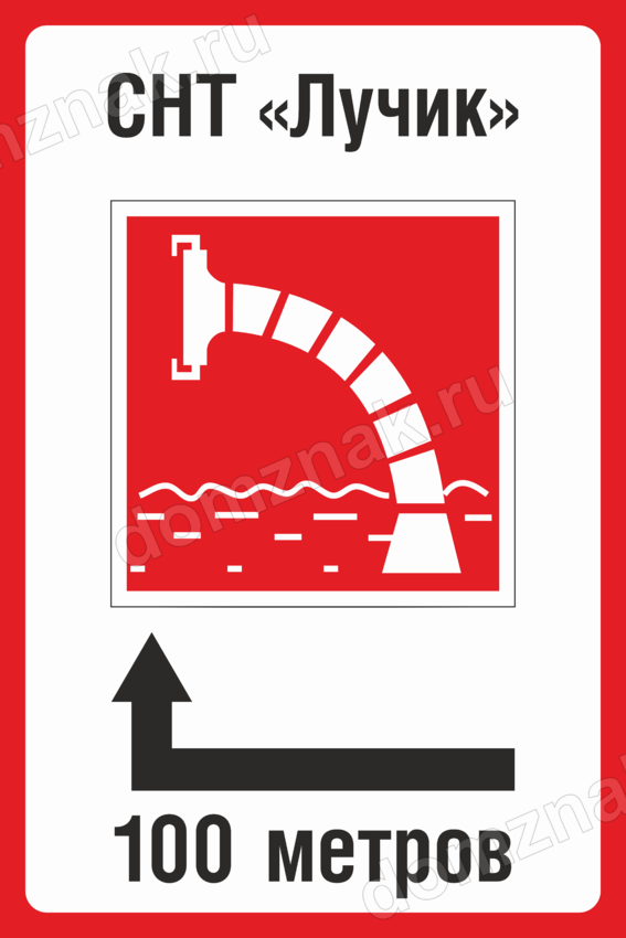 Указатель «Пожарный водоем налево вперёд 100 метров»