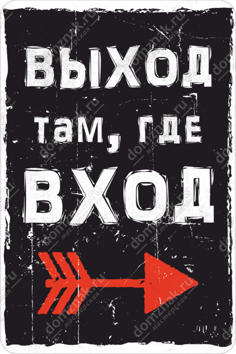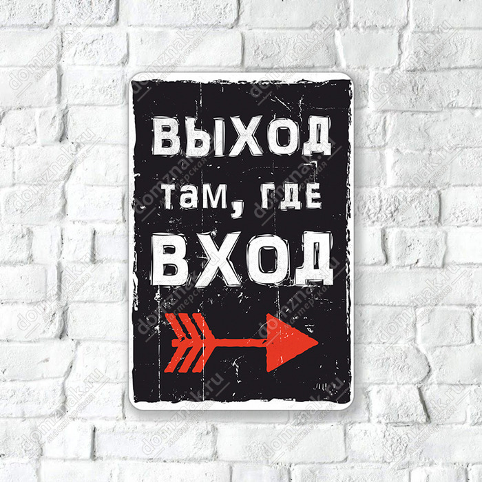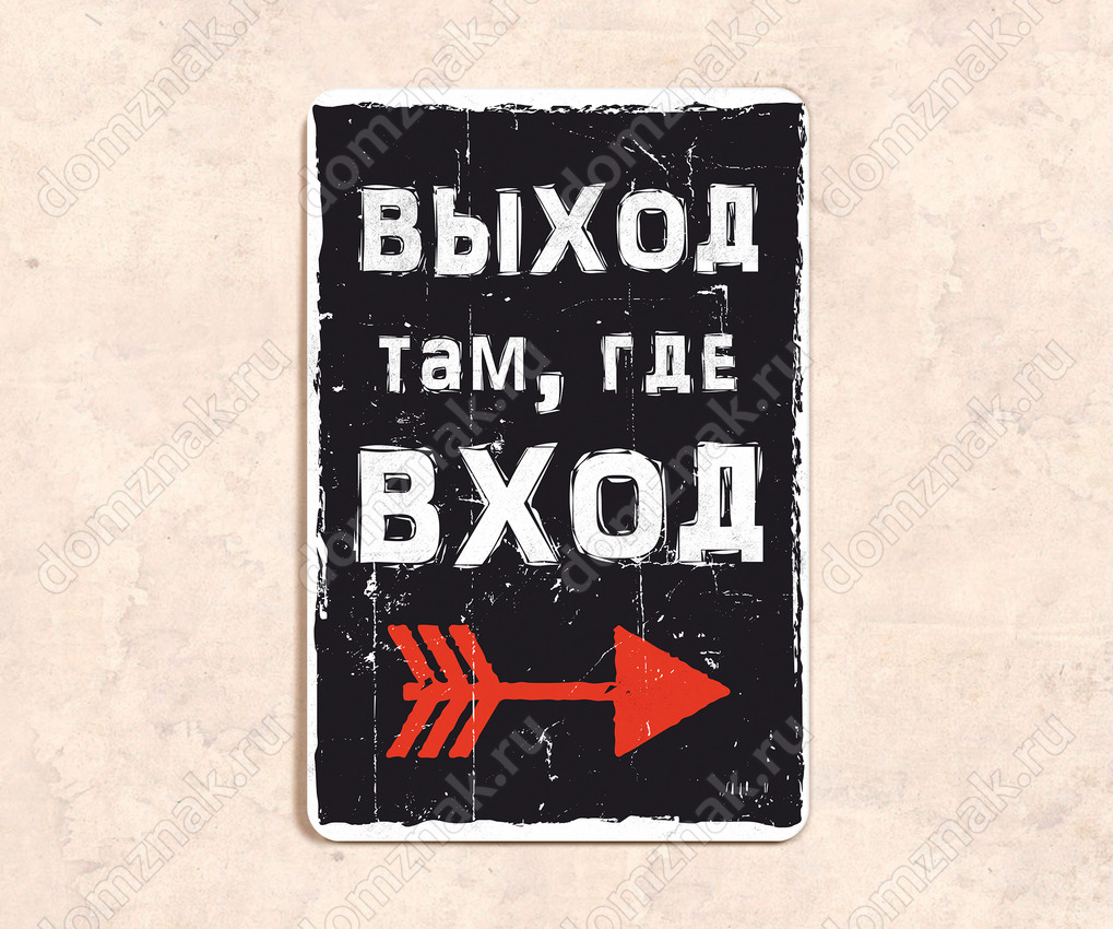 Табличка «Выход там, где вход» изготовлена из пластика ПВХ, толщиной 4 мм. Изображение наносится по технологии УФ-печати. Табличка предназначена для использования как в помещении, так и на улице.
