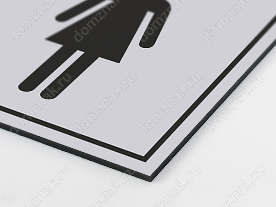 Табличка «Женский туалет» изготавливается из пластика ПВХ толщиной 3 мм.