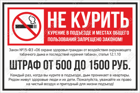 Наклейка «Не курить. Запрещено законом» изготавливается из матовой виниловой плёнки. Толщина наклейки 160 мкм, что позволяет легко наклеить ее на любую ровную поверхность без образования пузырей воздуха и складок.