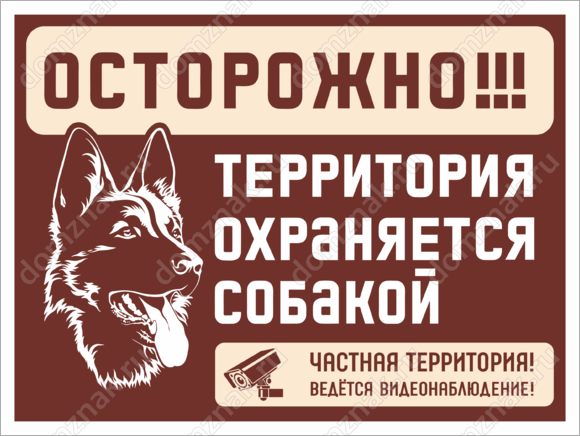 Табличка «Осторожно! Территория охраняется собакой. Частная территория, Ведется видеонаблюдение»