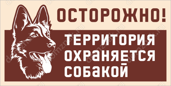 Табличка «Осторожно! Территория охраняется собакой.» изготавливается на основе из пластика ПВХ или оцинкованного металла.