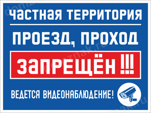 Табличка «Частная территория проезд, проход запрещен! Ведется видеонаблюдение!»
