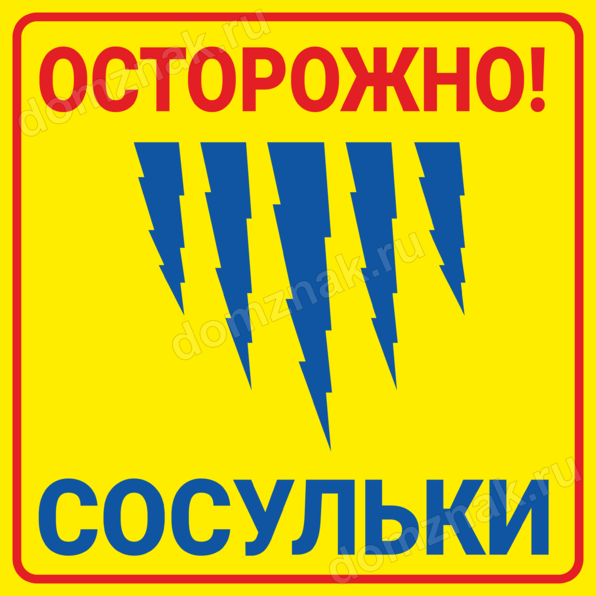 Табличка «Осторожно! Сосульки» изготавливается на основе из пластика ПВХ или оцинкованного металла.