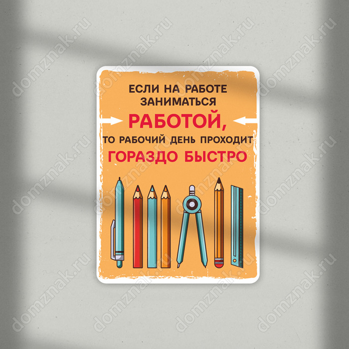 Табличка «Если на работе заниматься работой, то рабочий день проходит гораздо быстрее»