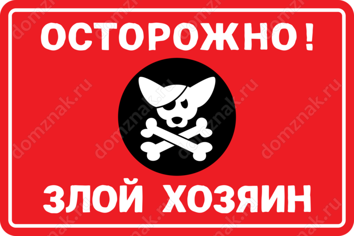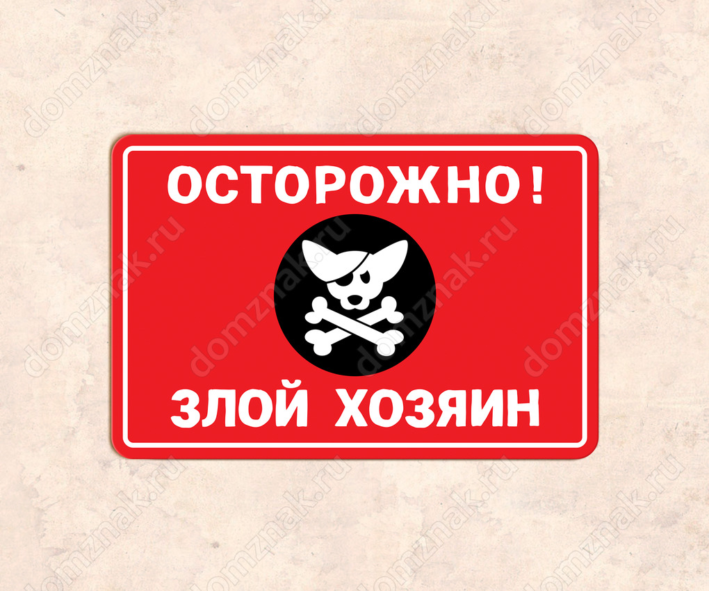 Табличка «Осторожно! Злой хозяин» изготовлена из пластика ПВХ, толщиной 4 мм. Изображение наносится по технологии УФ-печати. Табличка предназначена для использования как в помещении, так и на улице.