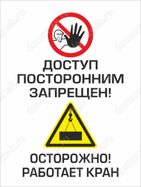 Табличка «Доступ посторонним запрещен! Осторожно работает кран!» изготавливается на основе из пластика ПВХ или оцинкованного металла.