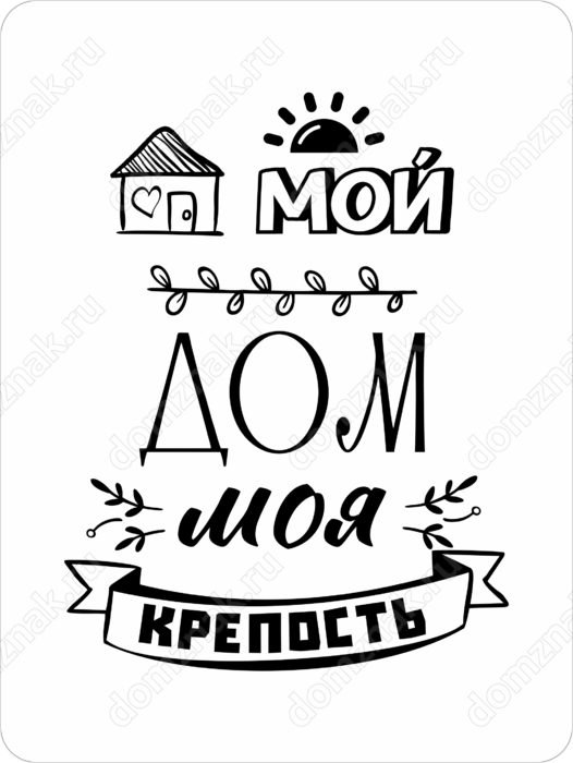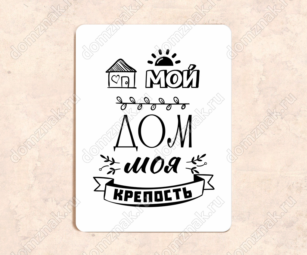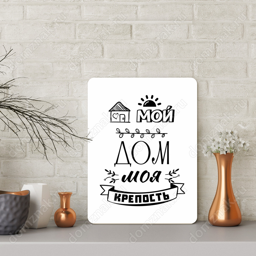 Табличка «Мой дом, моя крепость» изготовлена из пластика ПВХ, толщиной 4 мм. Изображение наносится по технологии УФ-печати. Табличка предназначена для использования как в помещении, так и на улице.