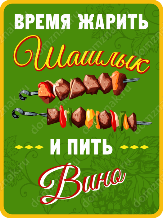 Табличка «Время жарить шашлык и пить вино»