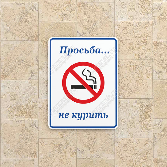 Табличка «Просьба не курить» изготавливается на основе из пластика ПВХ или оцинкованного металла.