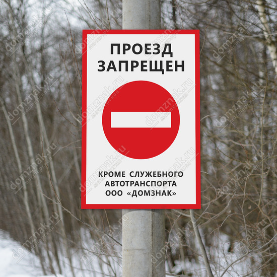 Обозначить зону проезда для служебного транспорта предприятия или организации помогает табличка с дорожным знаком «кирпич» и пояснительной надписью «Проезд запрещен, кроме служебного автотранспорта». Заказывайте табличку, и наши мастера внесут данные о вашем ресторане, магазине, офисе или другой организации на информационный знак.