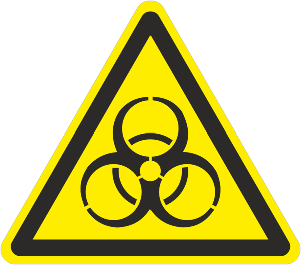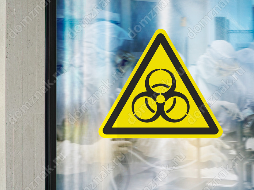Предупреждающий знак безопасности «Осторожно. Биологическая опасность (Инфекционные вещества)» (код W16) устанавливается в местах хранения, производства или применения вредных для здоровья биологических веществ.