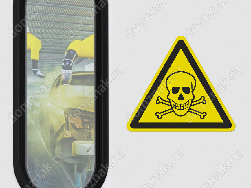 Знак «Опасно. Ядовитые вещества» изготавливается в нескольких вариантах: