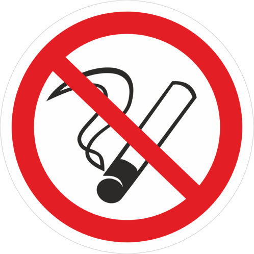 Запрещающий знак безопасности «Запрещается курить» (код P01), используется, когда курение может стать причиной пожара. На дверях и стенах помещений, участках, где имеются горючие и легковоспламеняющиеся вещества, или в помещениях, где курить запрещается (ГОСТ Р 12.4.026-2001).
